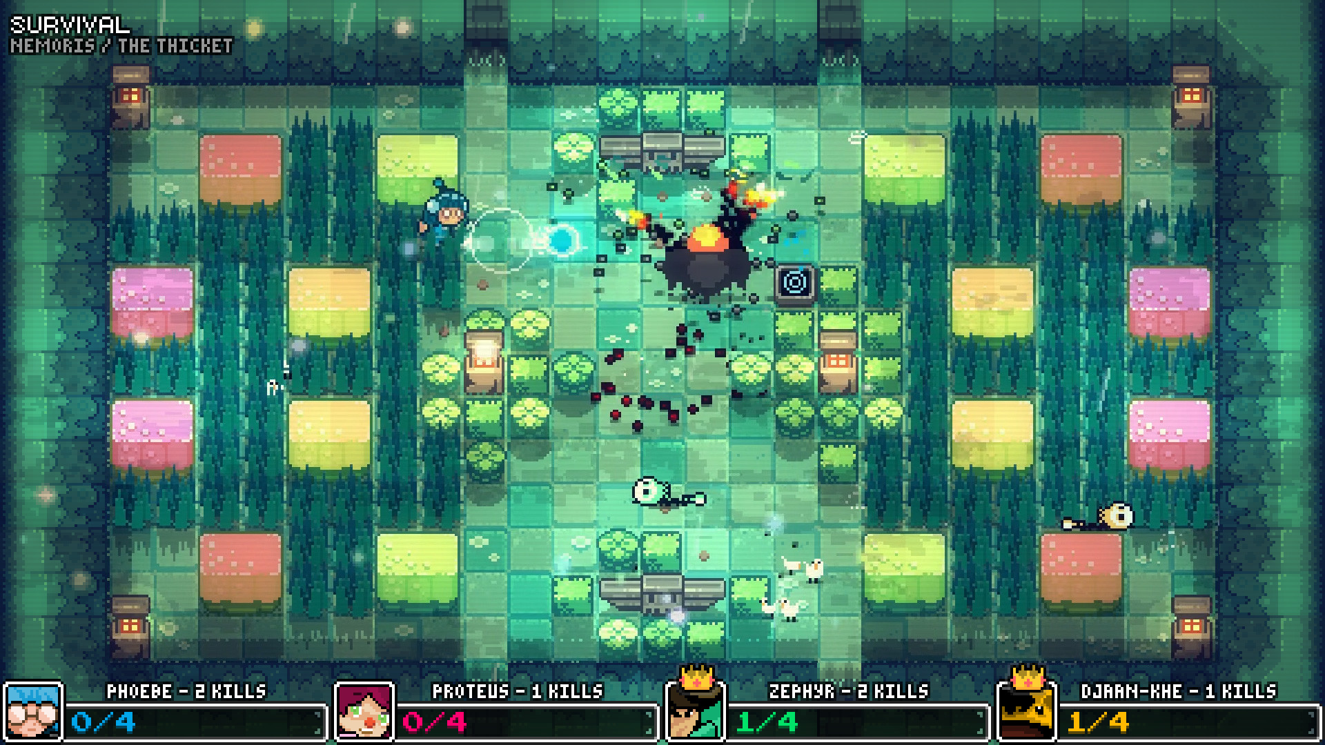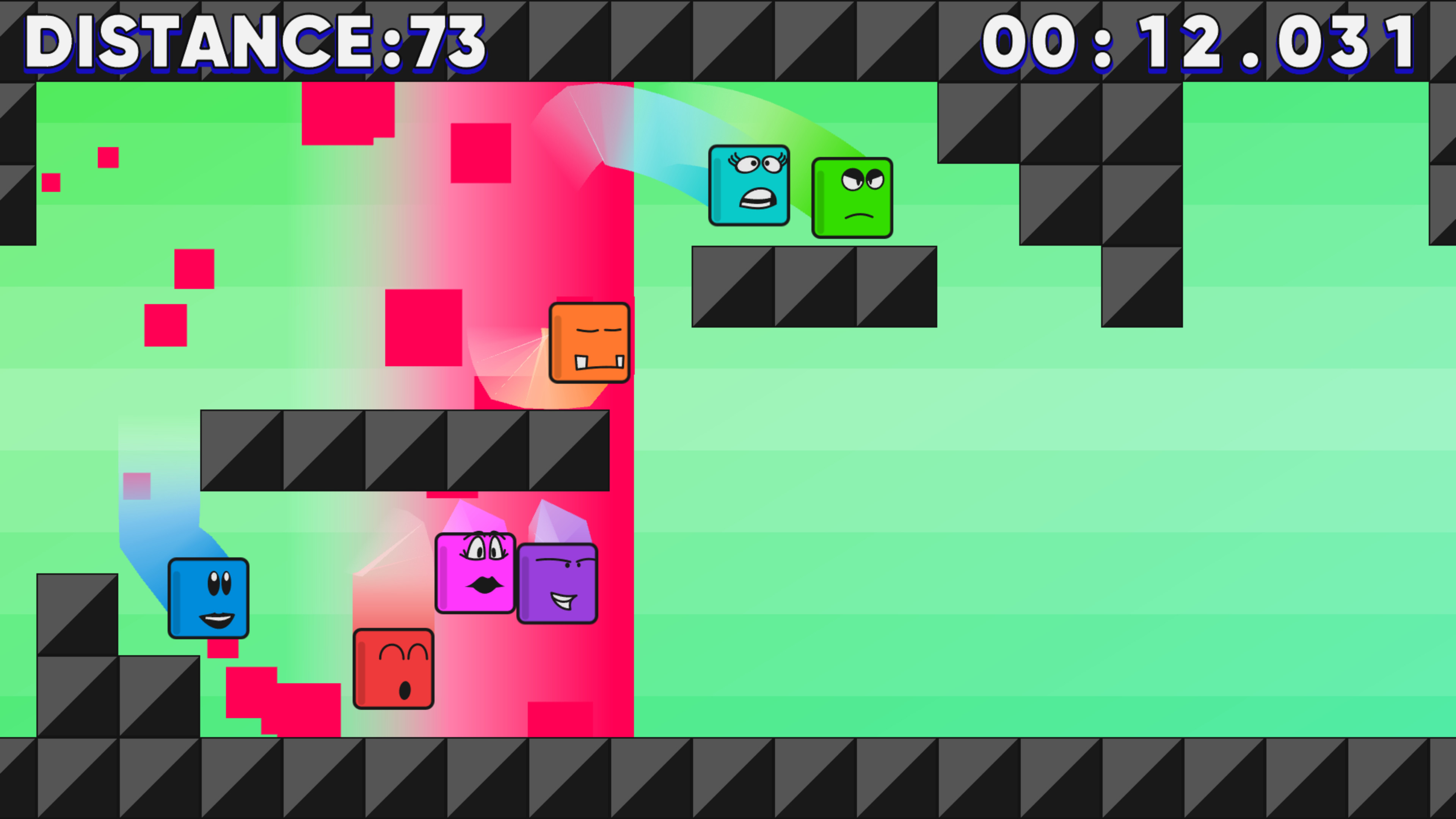Run, jump, block, and trap your friends in this local multiplayer platformer royale! The objective is easy: stay on the screen longer than your seven opponents to win!