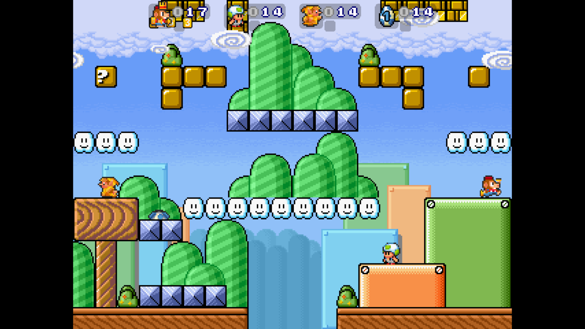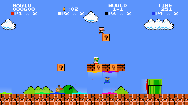 Super Mario War is a fan-made Super Mario Bros. style deathmatch game in which players try to beat one another in a variety of gameplay modes. You can play on teams, design your own levels, design your own worlds, and much more!
